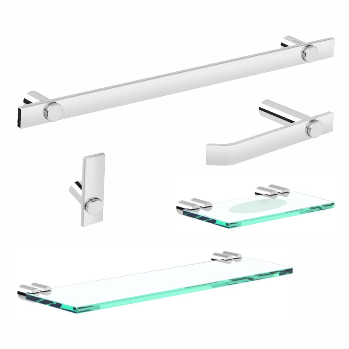 OS ITENS ENVIADOS: 1 Cabide, 1 Porta Papel Higiênico, 1 Porta Toalha Banho 55cm, 1 Saboneteira em Vidro, 1 Prateleira em Vidro 40cm, kit de parafusos e manual instrução instalação, kit de parafusos e manual instrução instalação