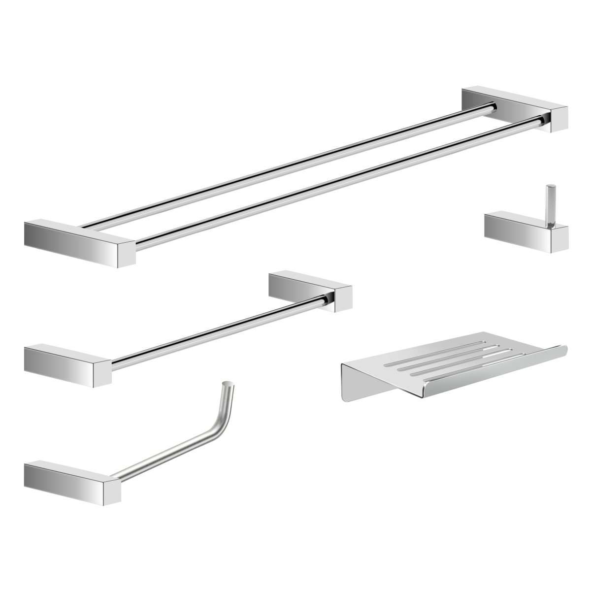 ITENS ENVIADOS:1 Cabide, 1 Porta Papel Higiênico, 1 Porta Toalha Rosto 32cm, 1 Porta Toalhas Duplo 62cm, 1 Saboneteira em Aço Inox, kit de parafusos e manual instrução instalação