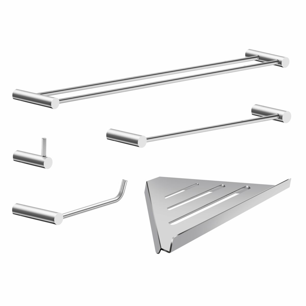 As Medidas Dimensionais cm: (Cabide A5xL2xP6) | (Porta Papel Higiênico A2xL15xP7) | (Porta Toalha Rosto A2xL32xP6) | (Porta Toalhas Duplo A2xL62xP10) | (Prateleira Canto A4xL30xP20)